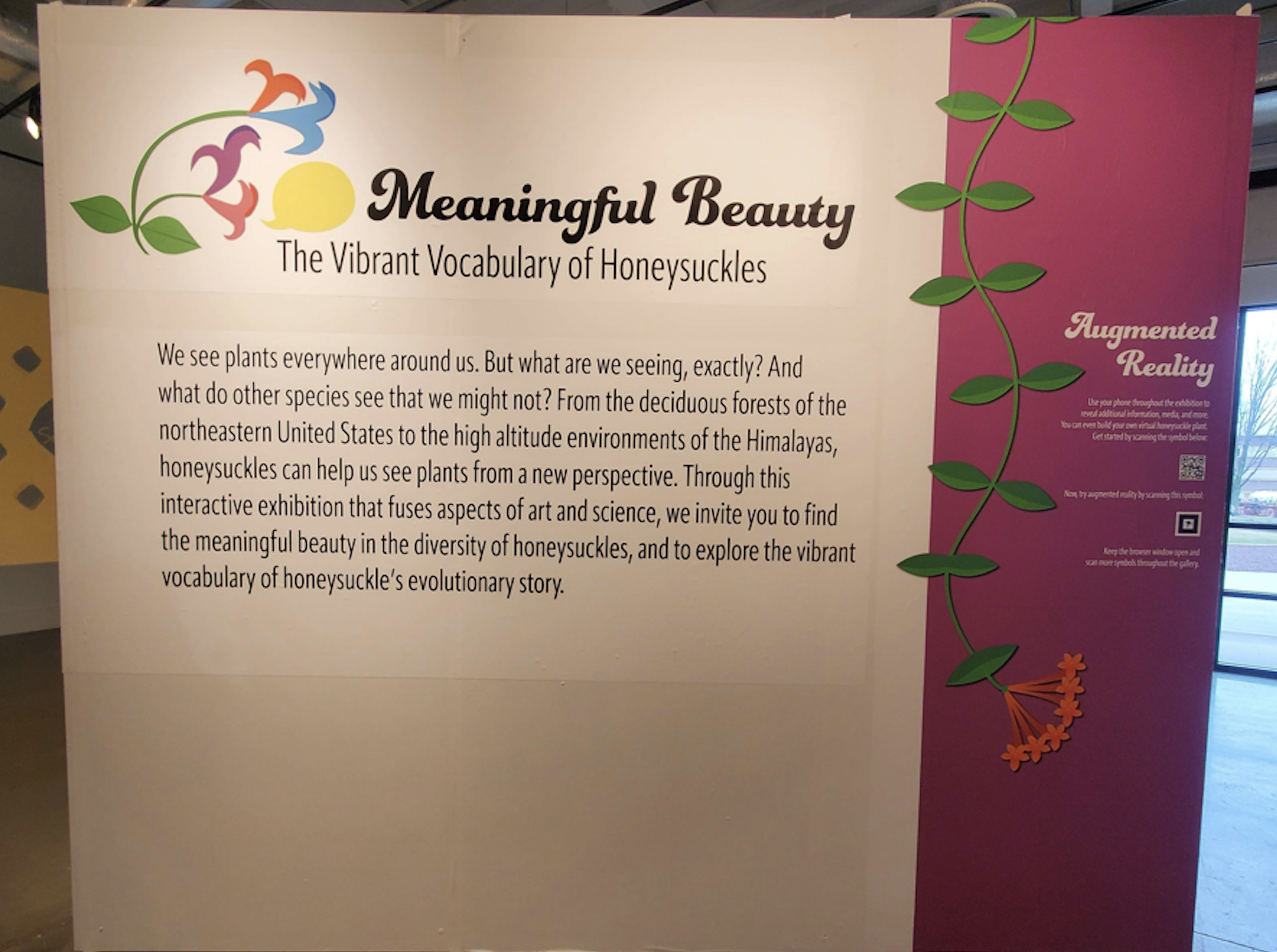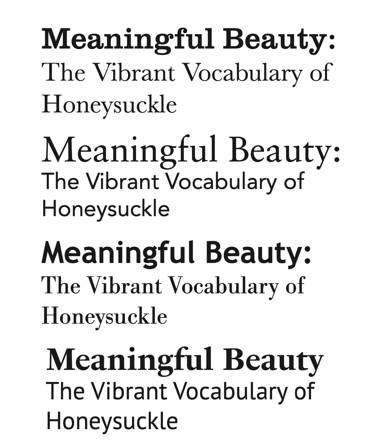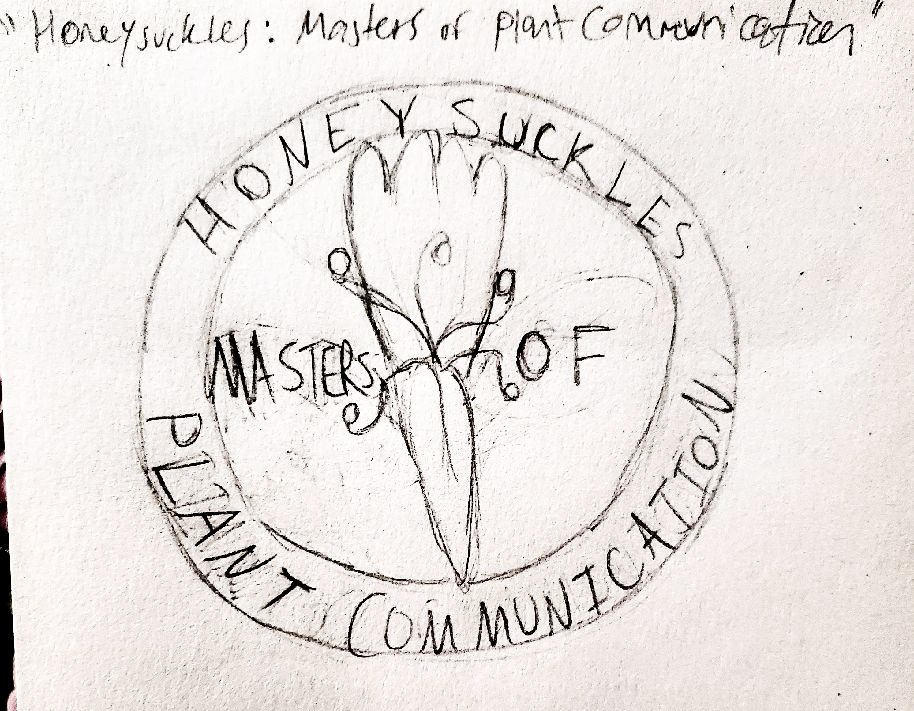 After this point the exhibit finally had an established name: "Meaningful Beauty: The Vibrant Vocabulary Of Honeysuckles". With the name established my sketches from here on out focused more on the logomark. I did sketches of many different honeysuckles, some were in a more simple minimal style but it seemed too stiff to give off the fun tone we were going for. I was given feedback and from that I started to experiement with the different ways a speech bubble could be incorporated into the logomark.