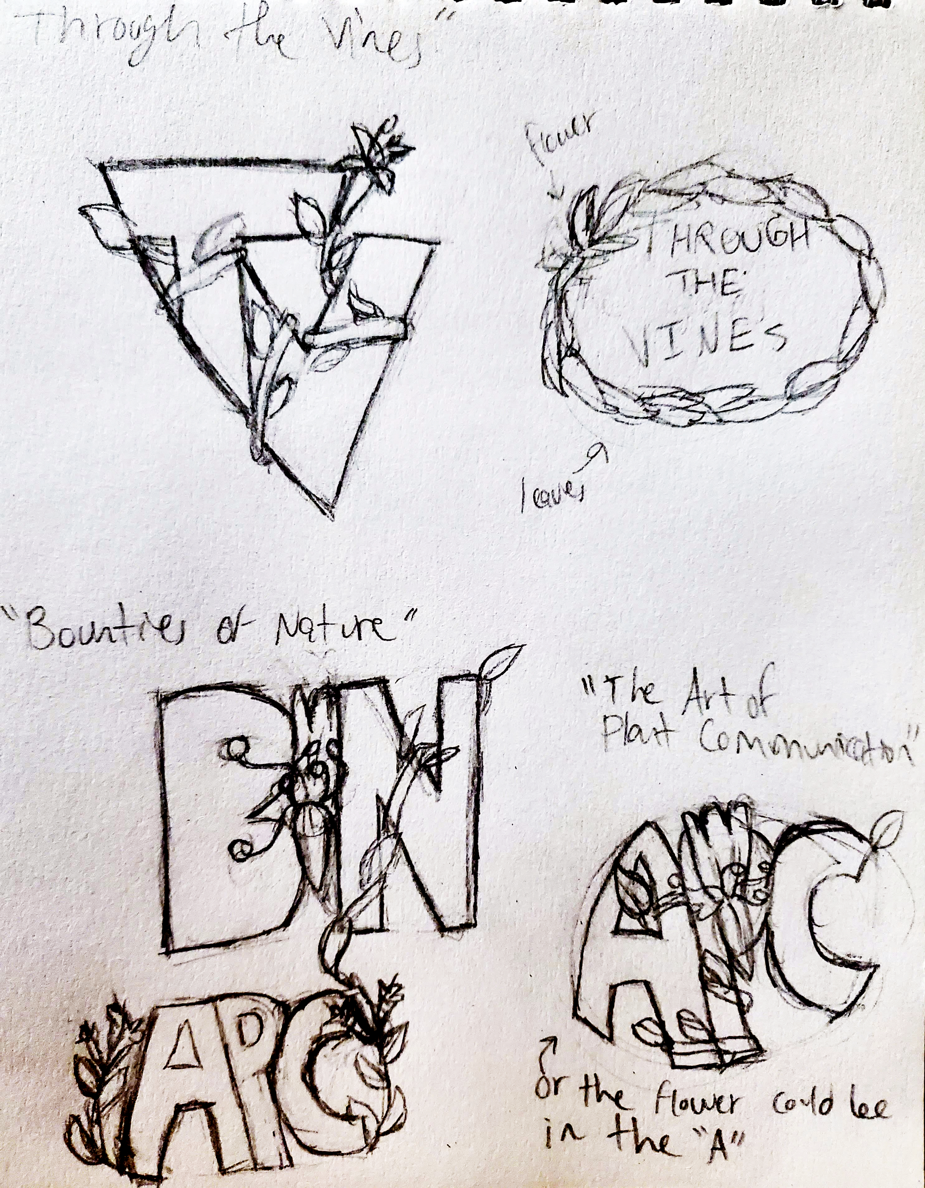 In the beginning the name of the exhibit was not decided yet. As a group we were coming up with names and I started on some rough sketches for what the logomark and logotext could look like for a variety of names. It was already decided that the exhibit would be educational, fun, and interactive so I kept this in mind all throughout the design process. By this point there was no exact color scheme or anything else to go off of aside from the concept, tone and purpose of the exhibit. Still, I sketched most of the ideas that popped into my head on a sketchpad with pencil as seen below.